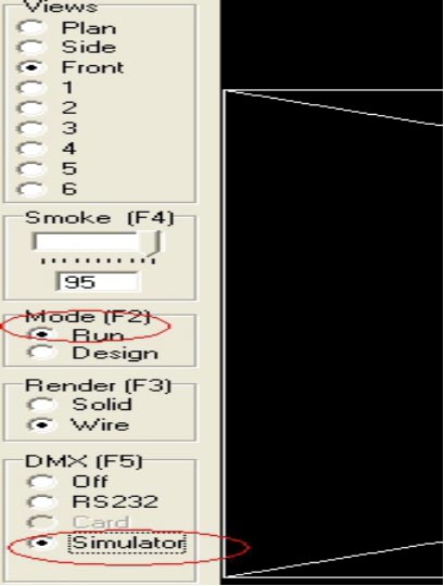 3.設(shè)好后。再將模式選到Run運(yùn)行 將DMX 選Simulator